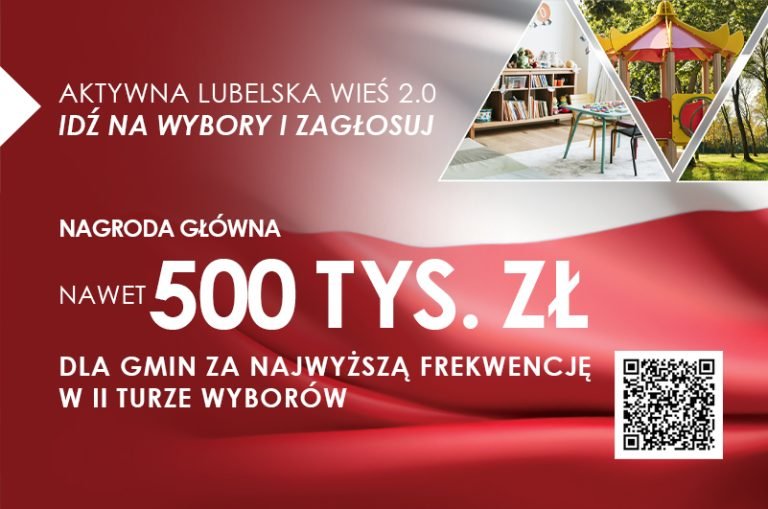 W związku z II turą wyborów na Prezydenta Rzeczpospolitej, Urząd Marszałkowski Województwa Lubelskiego w Lublinie zaprasza do jak najliczniejszego udziału w wyborach i sięgnięcia po środki dla swoich „małych ojczyzn” w ramach akcji „Aktywna Lubelska Wieś 2.0”. Budżet konkursu to ponad 1 milion złotych. Więcej informacji w załaczeniu.