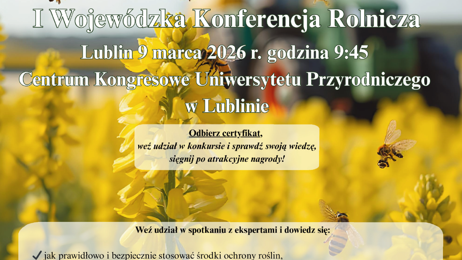 Bezpieczne Stosowanie Środków Ochrony Roślin”, która odbędzie się 9 marca 2026 r. w Centrum Kongresowe Uniwersytetu Przyrodniczego w Lublinie.